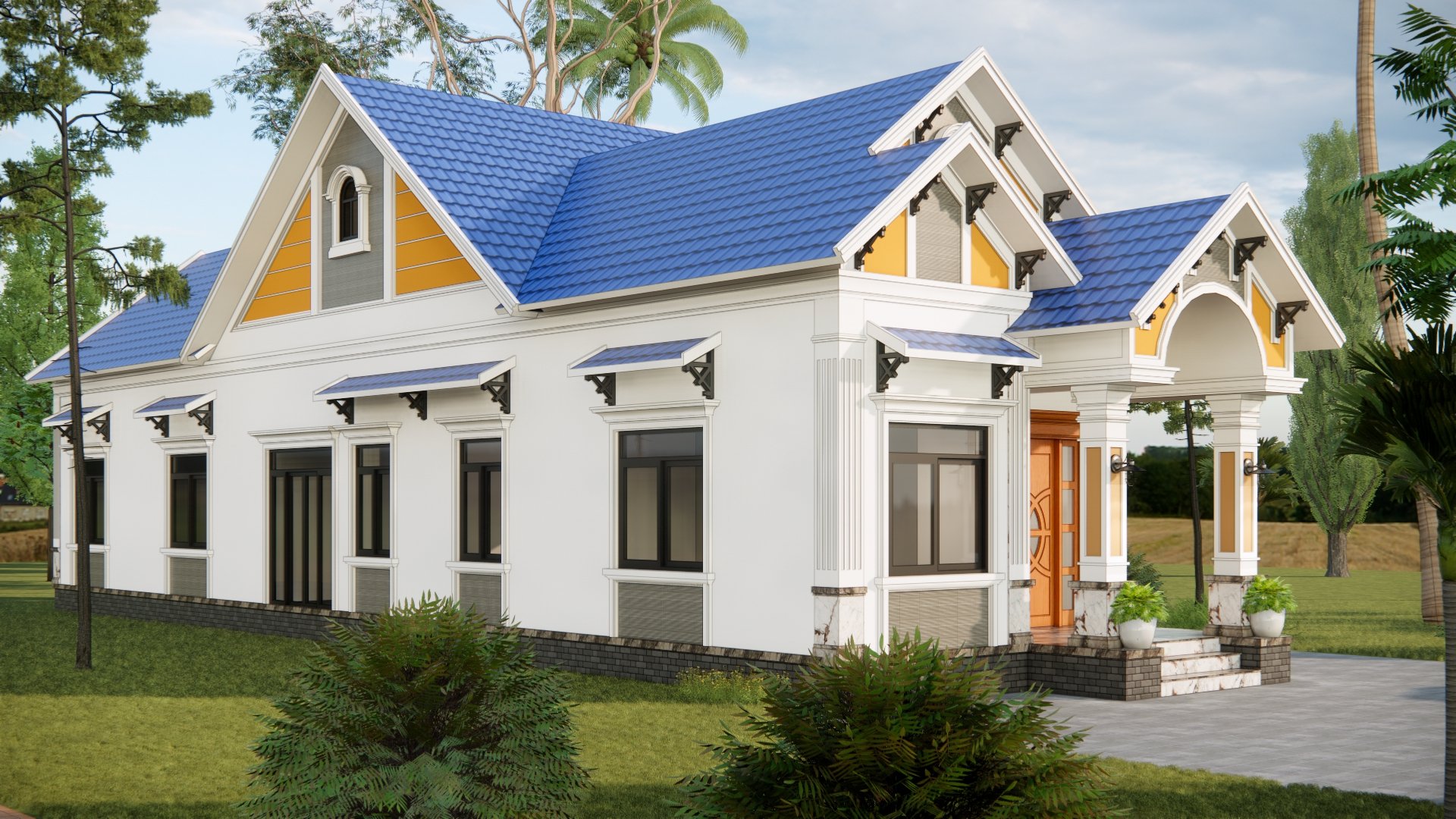 Biệt thự mái thái có nhiều kiểu dáng cách điệu phù hợp với nhiều công trình kiến trúc khác nhau, chất liệu đa dạng đáp ứng nhu cầu đa dạng của khách hàng.